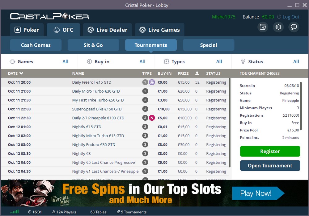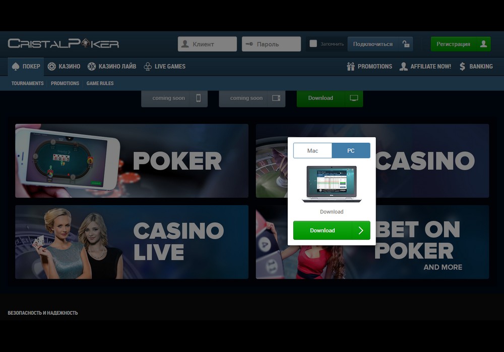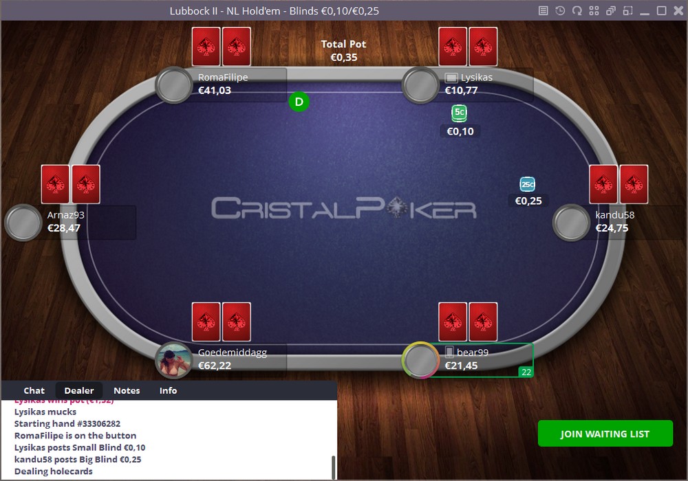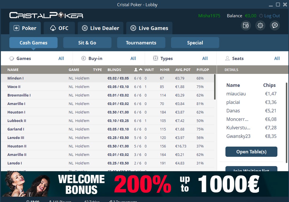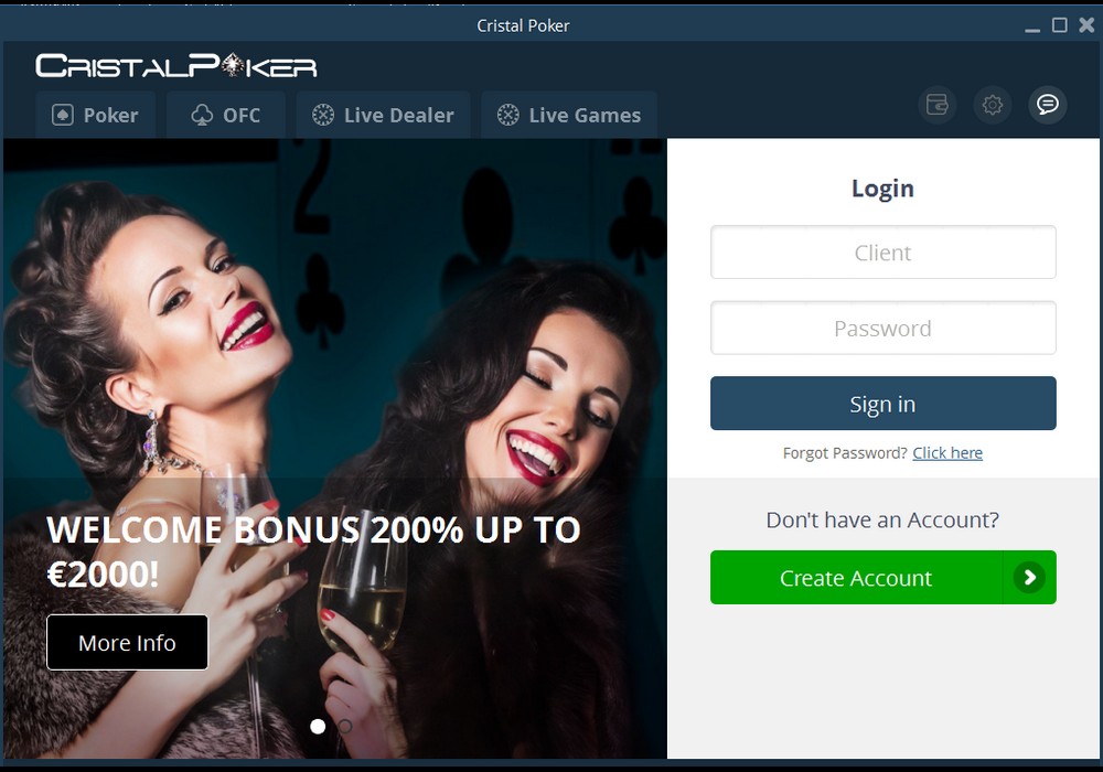 Покер рум Cristal Poker работает на программном обеспечении от компании Open SSL. В программном клиенте Cristal Poker нет ничего лишнего – он обладает интуитивно понятным интерфейсом и легкой навигацией, дополненные приятным видом игровых столов.