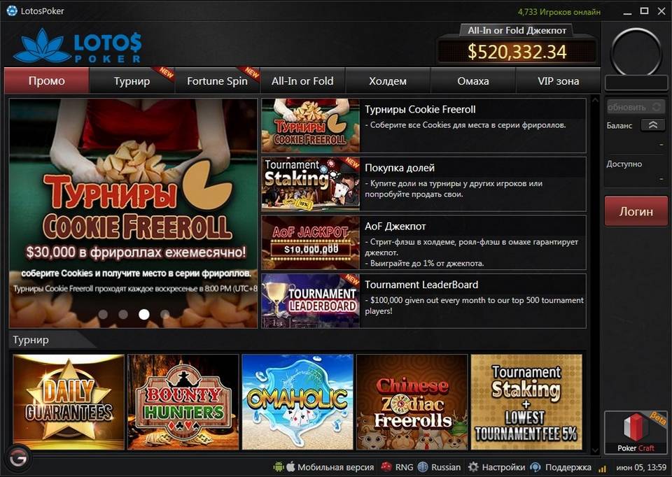 LotosPoker предлагает каждый день широкий выбор турниров с гарантированными призовыми фондами, а также сателлитов и фрироллов на любой вкус.