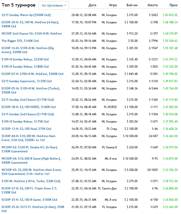 Подробно рассказывать про его остальные заслуги уже нет никаких сил – он и так появляется в новостях и всевозможных рейтингах чаще, чем любой другой покерист. Подробно изучить его фантастический апсвинг длиною в жизнь вы можете на Macropoker, ну а здесь давайте просто лишний раз полюбуемся на его общие результаты: