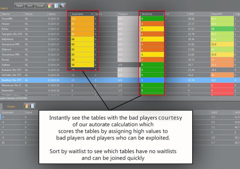 С помощью покерной программы Table Scanner 2 вы сможете выбрать столы с определенными противниками, подходящими под ваши критерии, или найти столы с максимальным количеством слабых игроков. Программа обладает множеством настроек и фильтров. Вы можете сортировать столы по определенному лимиту игры, среднему размеру банка, частоте просмотра флопа и другим параметрам.